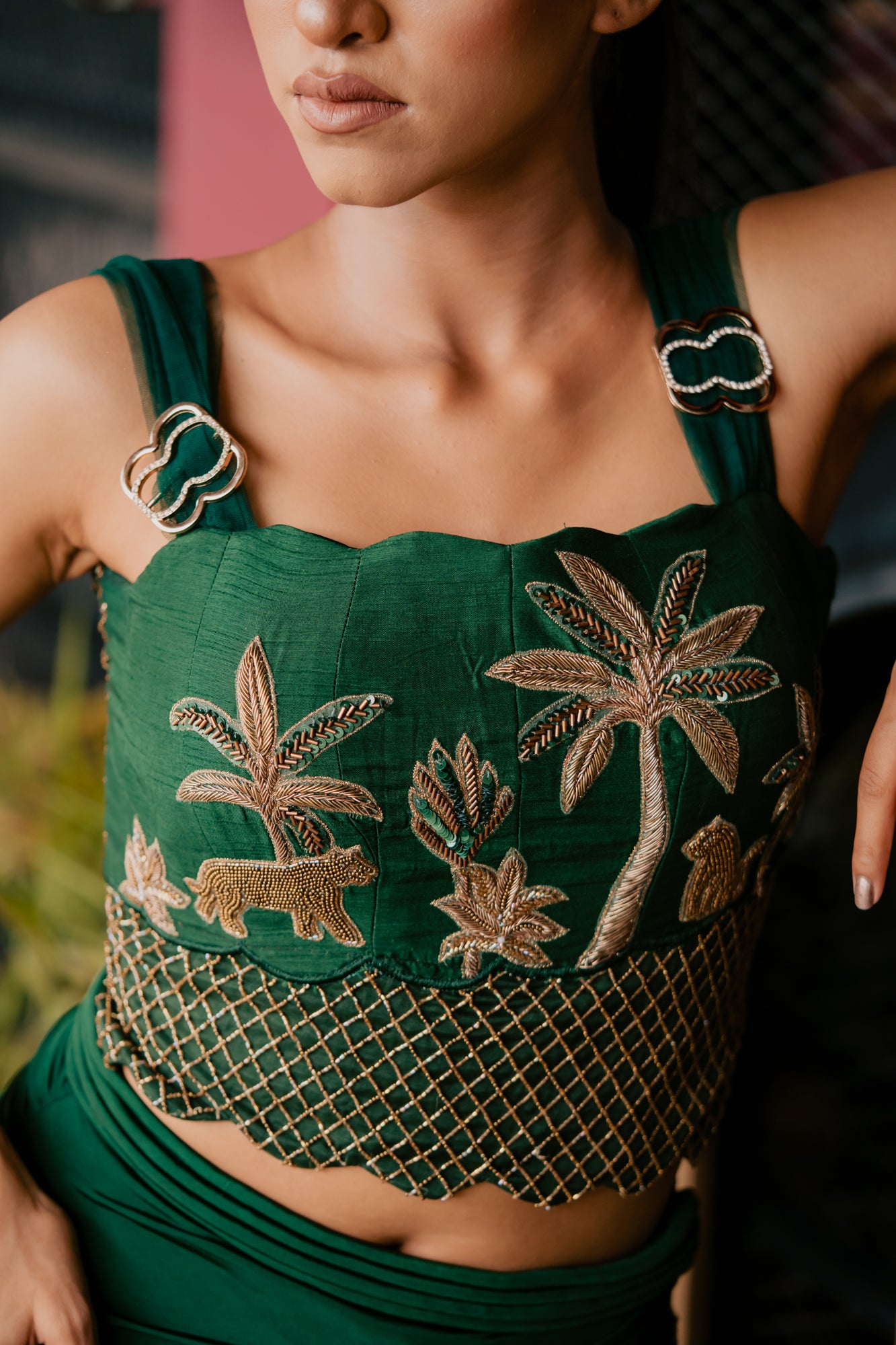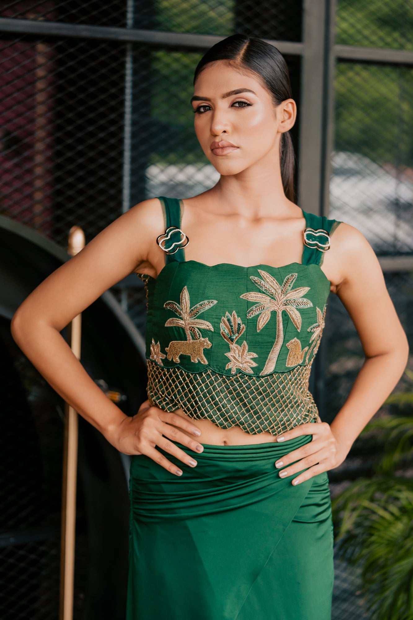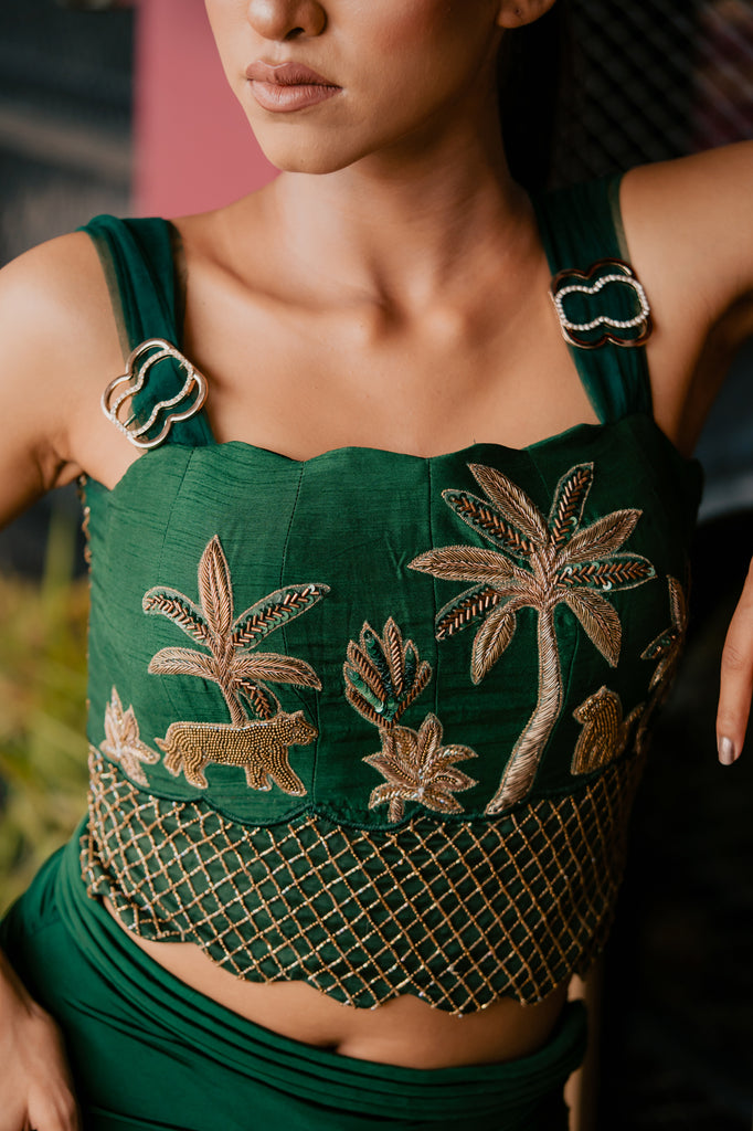 Emerald Leopard Embroidered Corset and Drape