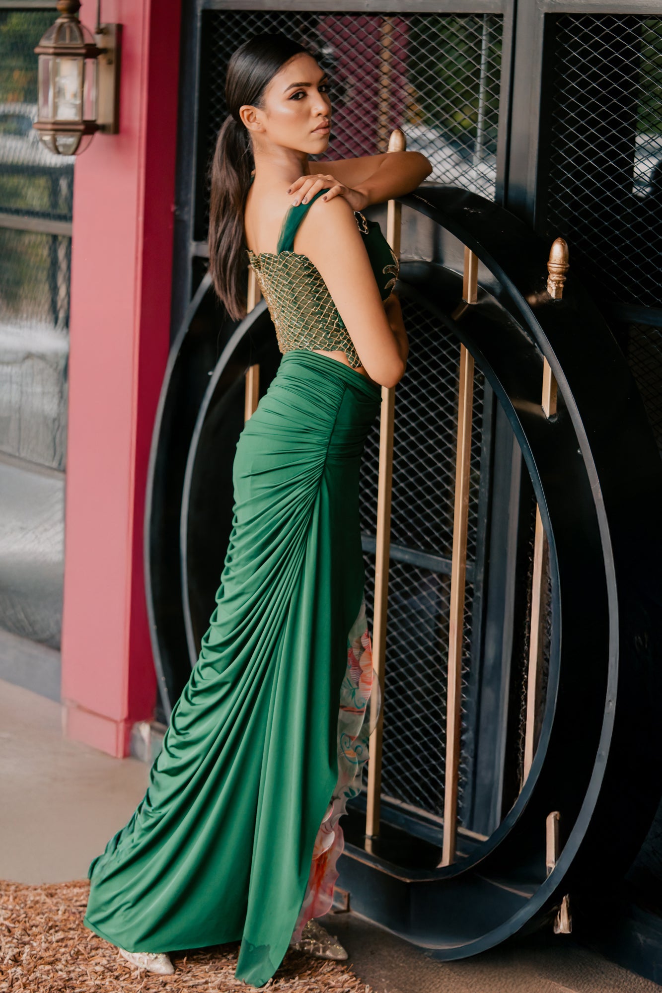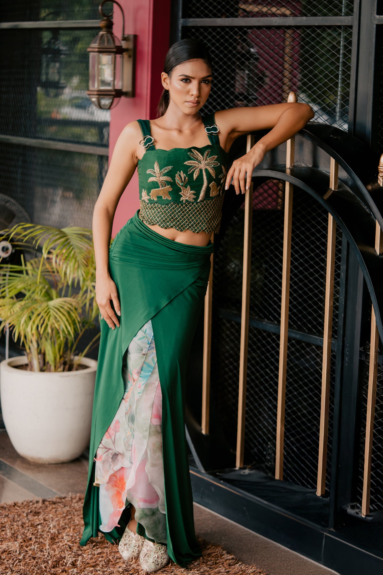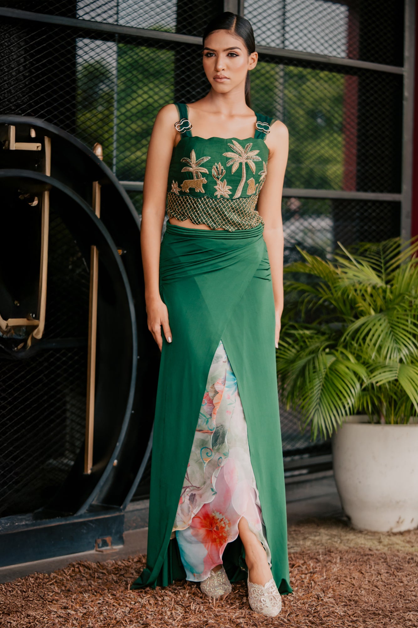 Emerald Leopard Embroidered Corset and Drape